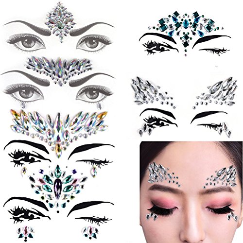 6 Sets Mermaid Face Gems Festival Jewels Crystals Bindi Rainbow Tears Rhinestone Tattoo Face Rocks by PIAOPIAONIU