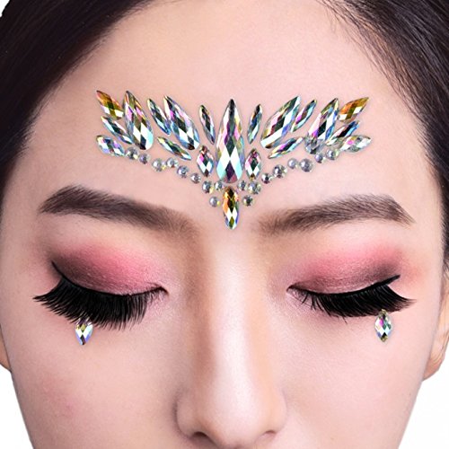- Place your gems all over your face and body,forehead,eyebrows,cheeks,around your eyes,stomach,chest,back,arms,hands and even your hair!Wear them like a bindi.