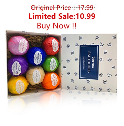 -. Feature : PREMIUM QUALITY:Handmade, Natural and Organic. Contained the finest ingredients including Mineral Salts, Baking Soda, Cocoa Butter and Shea butter which make for excellent aromatherapy and healing accompaniments. / SUPERIOR VALUE: Bath Bombs fizzies Set includes 8 bath bombs(golf-ball size): Mint,Rose,Lemon,Lavender,Eucalyptus,Vanilla,Milk and Ocean. / TURN THE BATH INTO A LUXURIOUS SPA:Premium Nature Bath Bombs Kit are like having a spa treatment right at home. Once you drop it in the water it begins to fizzle, releasing healthy and soothing agents that will leave your body feeling renewed. / NO STAIN:Our bath bombs are free of artificial colouring and dyes and will not stain your skin nor your bath tub.Therapeutic and Moisturizing Bath Bombs, formulated for Normal/Dry skin. Developed and Created by us, a bath bomb company with passion / PERFECT GIFT IDEAS for Party Favors and Wedding. This luxury bath bomb gift sets is on many's wish list. Perfect Gift for Fathers Day Gifts, Birthday Gift,Valentines Gift, Relaxation Gifts for Women,Man,Mom,Wife, Girlfriend,Teens, Her or the one you love.Bath Bomb Individually Wrapped.