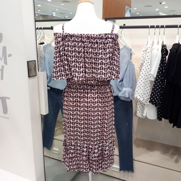 웨이스트 스트링으로 실루엣 조절이 가능한 제품입니다.베이직한 디자인에 올오버 패턴 프린트로 포인트룩하기 좋은 아이템 입니다.