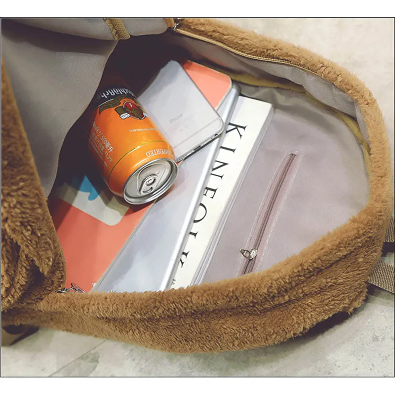 Faux Fur Backpack Function:High Quality Women Backpacks Shoulder Bag