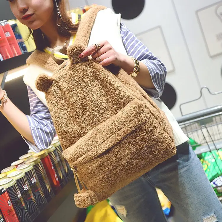 Faux Fur Backpack Usage:Fashion Backpacks Shoulder Bag Student Book Bag