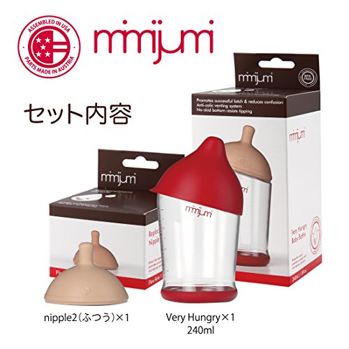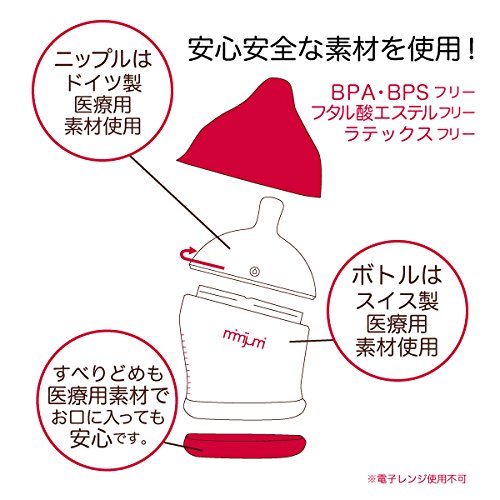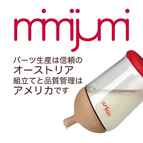 世界各国で雑誌掲載多数、米国では企業のヘルスケア部門やベビー雑誌などで受賞◆現在世界30か国以上で愛用されている話題のほ乳びんが日本初上陸!◆二人の精神科医と一人の工業デザイナーによって2008年アメリカで設立されたmimijumi社は新しい子育て世代に 向けたスタイリッシュでナチュラルなほ乳びんを開発しました◆mimijumi はママのおっぱいに限りなく近く作られているので、赤ちゃんはmimijumi に自然になじむことができます。ママは安心していつでも母乳とほ乳びんによる授乳ができ、ミルクへの移行も簡単です◆仕事復帰を目指すママ、混合授乳したいママ、ナチュラルなほ乳びんをお探しのミルク派のママやパパにもお勧めの、素材にこだわった安心安全な母乳びんです◆信頼のおけるスイス製、ドイツ製の高品質な医療用素材を使用し、BPA、BPS、ラテックス、フタル酸エステルなどの人体に悪影響を及ぼす可能性のある物質を含まないので安心してご使用いただけます◆オーストリアでパーツを生産し、アメリカで組立と厳しい品質管理を行っています◆mimijumiは食洗機対応でお手入れも簡単です。※電子レンジはご使用になれません。Feature