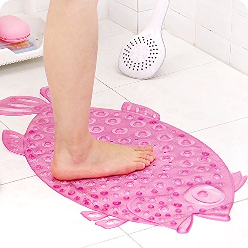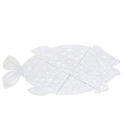 Bathroom Floor Mat Shower with Sucker Non-slip Anti Skid Suction Beach Theme Home Decor Fish Shape Safe for Kid Child Elder (Crystal)