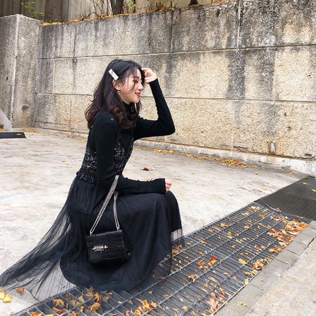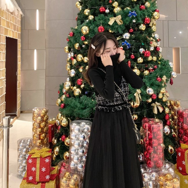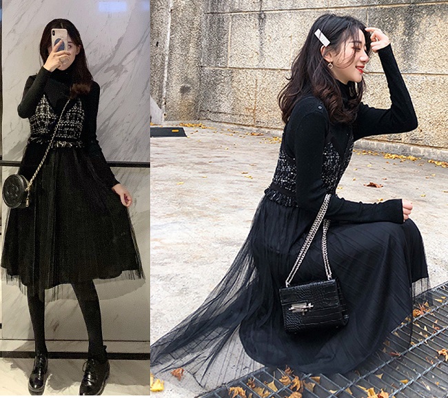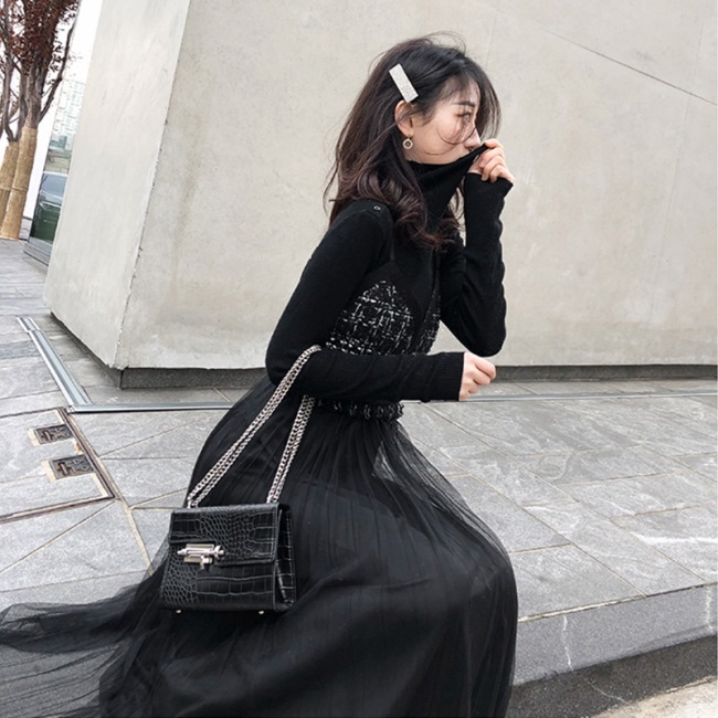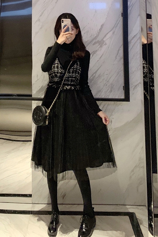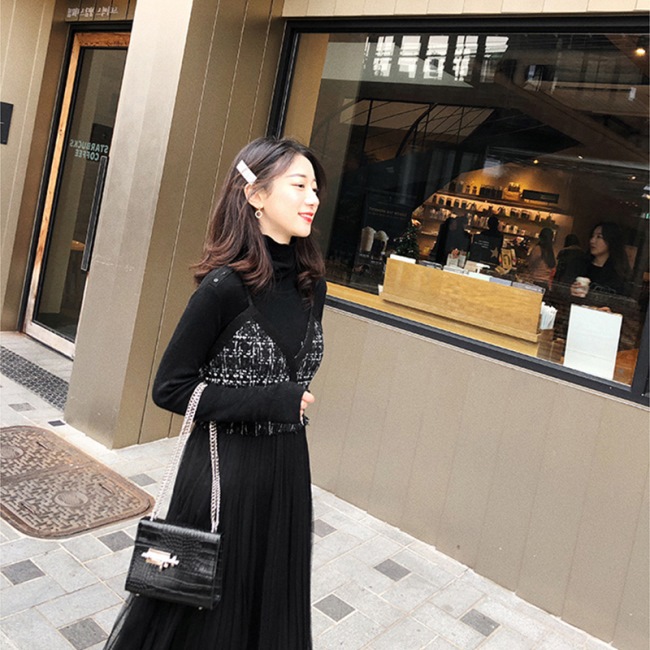 ジャガードトップのワンピースに黒タートルを合わせて◎お得に◎