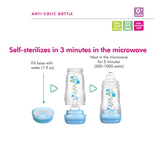 -. Binding : Baby Product -. Brand : MAM -. Color : Green -. Department : baby-boys -. EAN : 0845296066015 -. Feature : Comes with one Microwave Sterilizer, one Nipple Tong and one BPA free 5 Ounce MAM Anti Colic Bottle / Compact design holds up to six bottles / Sterilizer is small enough to fit in major microwaves, drain included / Two levels provide ample room for sterilizing many bottle components at once;Short sterilization time / Can also be used as a cold water sterilizer -. IsAdultProduct : 0 -. Label : MAM -. Manufacturer : MAM -. Model : 6601-002-1-1 -. MPN : MAM-125 -. PackageQuantity : 1 -. PartNumber : MAM-125 -. ProductGroup : Baby Product -. ProductTypeName : BABY_PRODUCT -. Publisher : MAM -. ReleaseDate : 2013-04-09 -. Studio : MAM -. Title : MAM Microwave Bottle Sterilizer, Green, 3-Count -. UPC : 845296066015