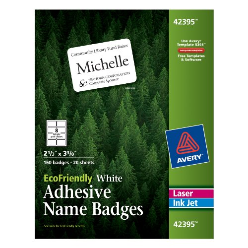 Avery EcoFriendly Name Badge Labels for Laser and Ink Jet Printers, 2.33 x 3.375 Inches, White, Permanent, Pack of 160 (42395)
