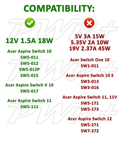 Pwr+ Extra Long 5.5 Ft Cord Rapid Car Charger for Acer-Iconia Tablet A100 A200 A210 A500 A501 W3 W3-810 DC; Acer Aspire-Switch 10 SW5 SW5-011 012; Gateway Tab Tp A60 Dc Adapter Battery-Power Cord: Psa18r-120p Ak.018ap.040 ADP-18TB Tablet Auto 12V Plug: !!