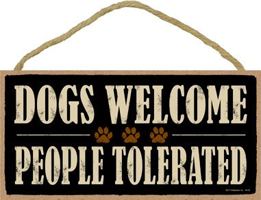 (SJT94125) Dogs Welcome People Tolerated 5" x 10" wood sign plaque