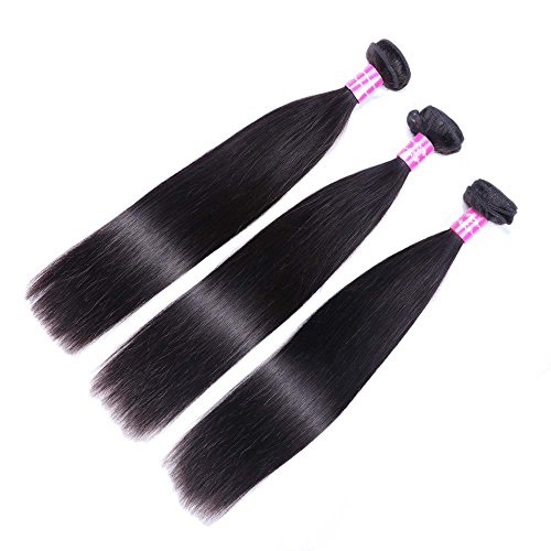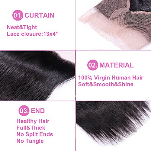 - 2.Hair Color&Length: Natural black color, 95-105g/bundle(3.2oz-3.5oz/bundle), 1pcs lace frontal is 55-85g, For the length,stretching the hair to be STRAIGHT and then measure.