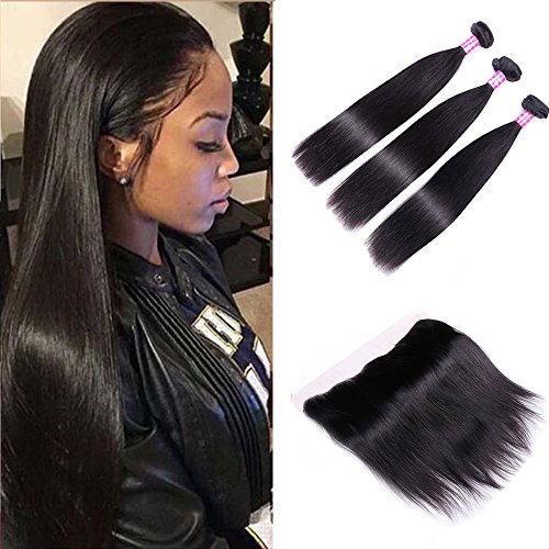 - 1.Hair Metiral:100% virgin human hair bundles and frontal, Brazilian straight hair 3 bundles with 1pcs lace frontal closure
