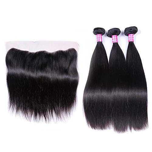 Sterly Brazilian Straight Hair 3 Bundles With Frontal Closure 13x4 Ear To Ear Lace Frontal With Bundles Unprocessed Virgin Human Hair Extensions Natural Color (12 14 16 +10)