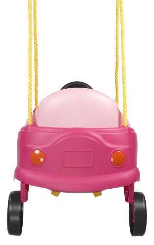 Chitty Chitty Bang Bang acts like it is the only flying car around, but there's room for plenty of flying cars in the world, and one of our favorites is the Little Tikes Princess Cozy Coupe First Swing. This swing-set version of the classic Little Tikes car features the same rugged design of molded plastic with those big eyes and large wheels, but this one is designed to attach to a standard swing set. The high seat with buckle keeps them safely inside while they play with the wheel and working horn. Dimensions: 16.5L x 22.5W x 17.5H in.. Plastic toddler swing. Recommended age: 9 months to 3 years. High seat back to help support rider. Seat belt for increased protection. Able to attach to existing swing set. Steering wheel with horn.