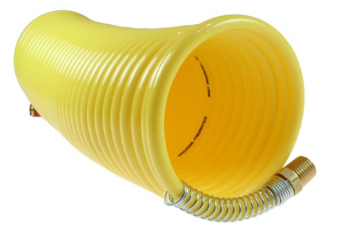 Coilhose Pneumatics N38-25A Coiled Nylon Air Hose, 3/8-Inch ID, 25-Foot Length with (1) 3/8-Inch Rigid Fitting and (1) 3/8-Inch Swivel Fitting