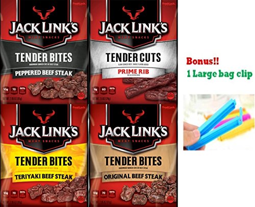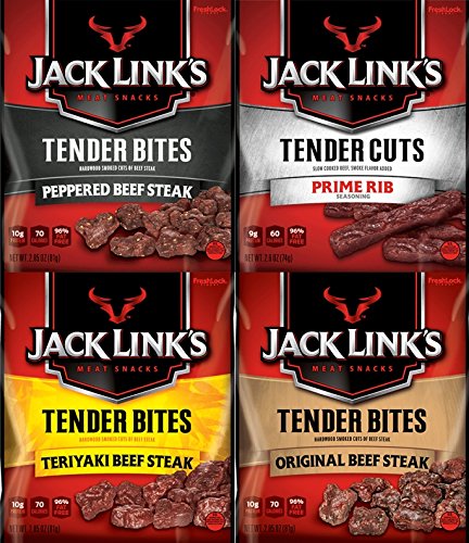 Jack Link's Premium Cuts Beef Steak Tender Bites, Mixed 4 Packs with 4 Flavors Variety Pack 2.85 Oz – Teriyaki, Peppered, Original, and Prime Rib (Pack of 4)