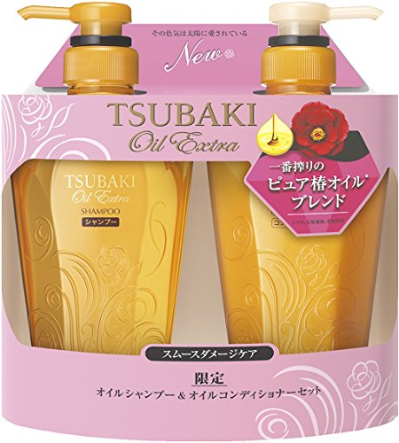 【본체세트】 TSUBAKI 오일 엑스트라 (스무스 데미지 케어) 샴푸 450ml + 컨디셔너 450ml
