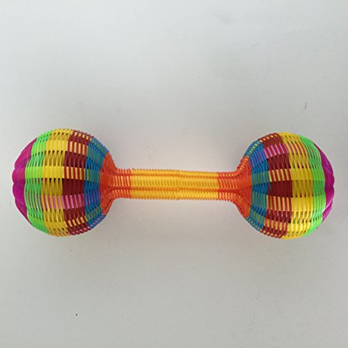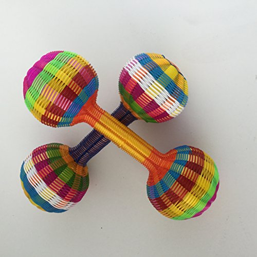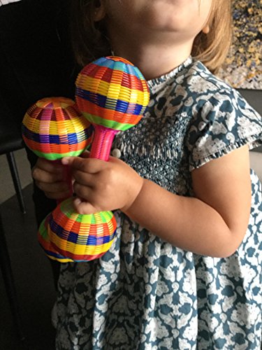 This colorfull sounding noise maracas super fun for toodlers or perfect for a baby Rattle. Plastic mesh easy to clean Hand crafted by Mexican artisans 6.5x 2in approx