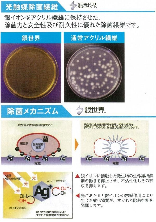| 素材・材質 | 表面:エステル、アクリル(銀世界)、指定外繊維(東洋紡ディスメル) 裏面:ポリウレタン |