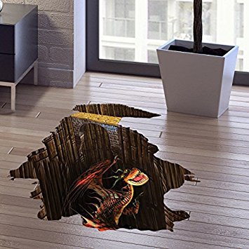 U-Shark 3D Vivid Dinosaurs Break Through the Wall Vinyl Self-adhesive Removable Wall Sticker/Mural Art Decals Decorator (Floor Hell(23.6" X 35.4"))