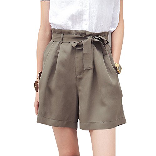 -. Title : Rality(レリティー) ウエストリボン ショートパンツ レディース パンツ ボトムス レディース スカート リボン バルーン ひざ丈 無地 フレア 大人可愛い M L グリーン ベー