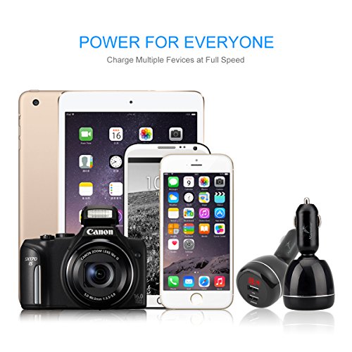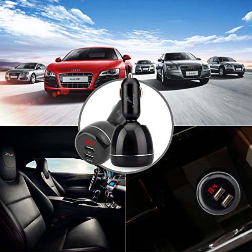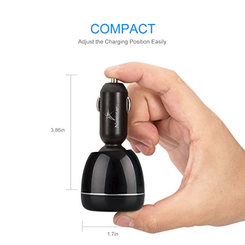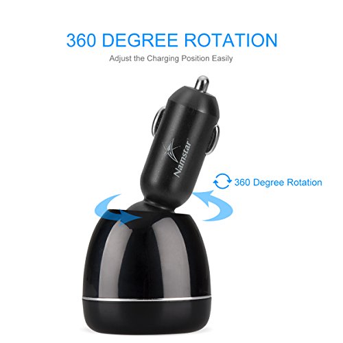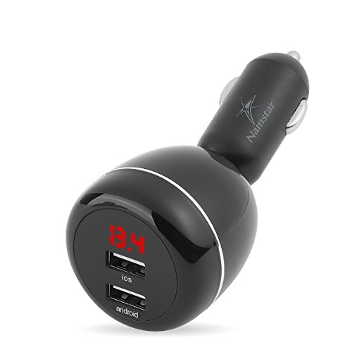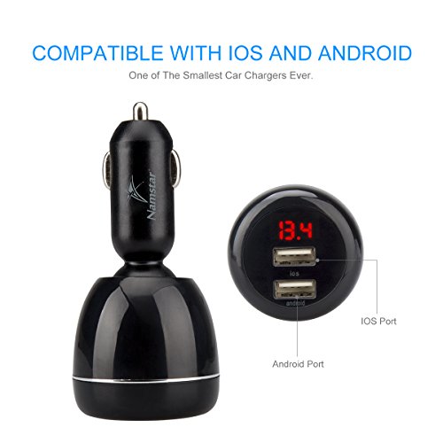 Namstar 5V/4.8A Dual Smart USB Car Charger 360 Degree Adjustable Auto Adapter Charger Engine Voltage Display /Monitor for iphone 6 6plus iphone 7 Samsung S7 Huawei ipad tablet PC # X7-R03 (Black)