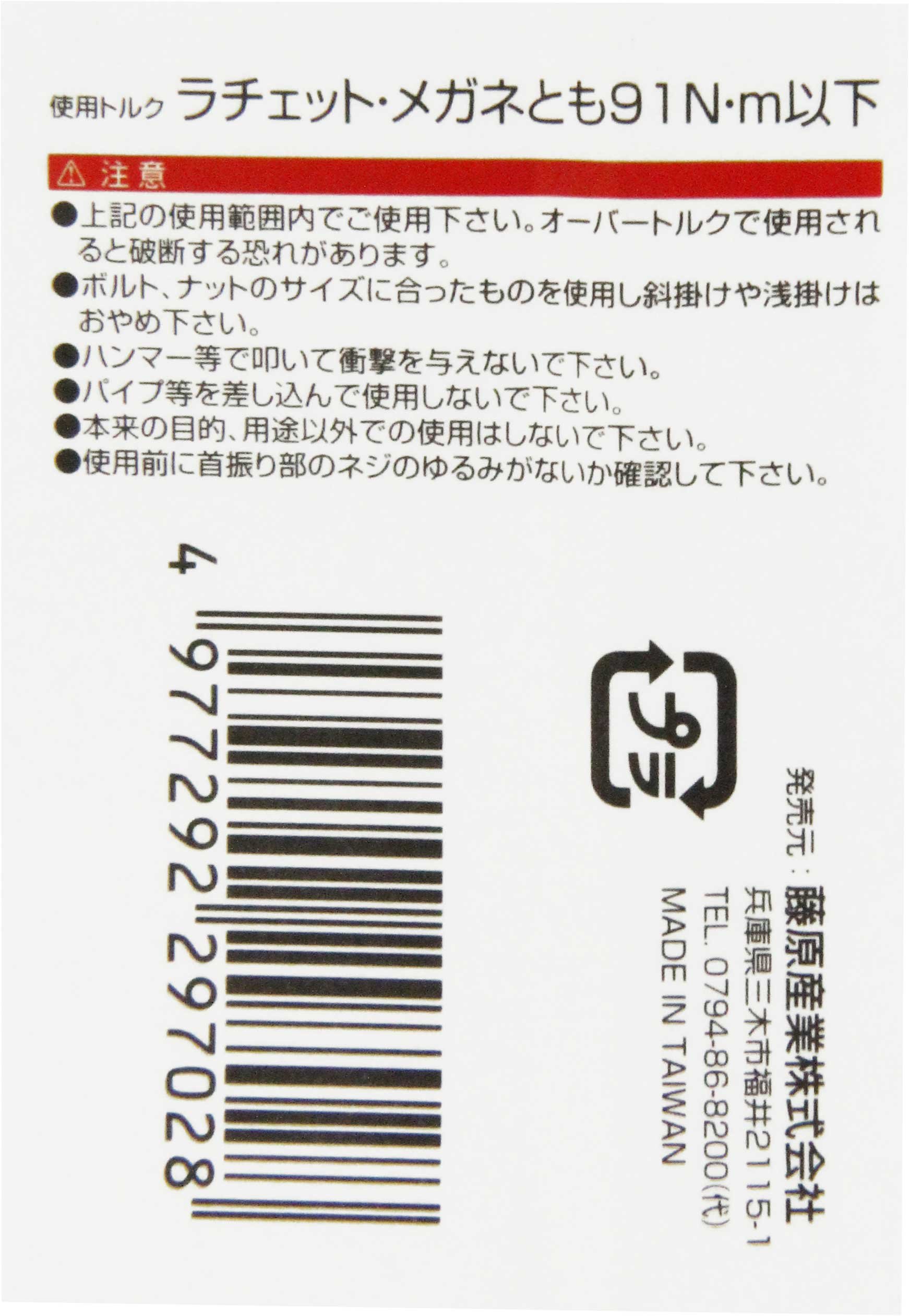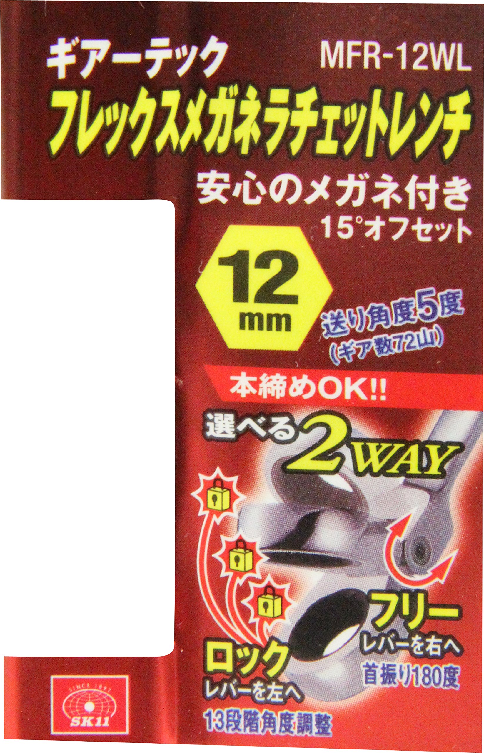 The other side of the ratchet adopts eyeglass shape and can be used with peace of mind even for those worried about breakage of the ratchet part <BR> The rise accuracy of the eyeglass part is 15 degrees