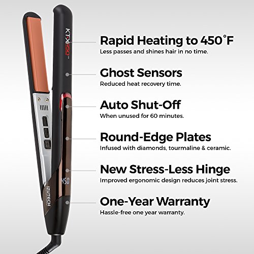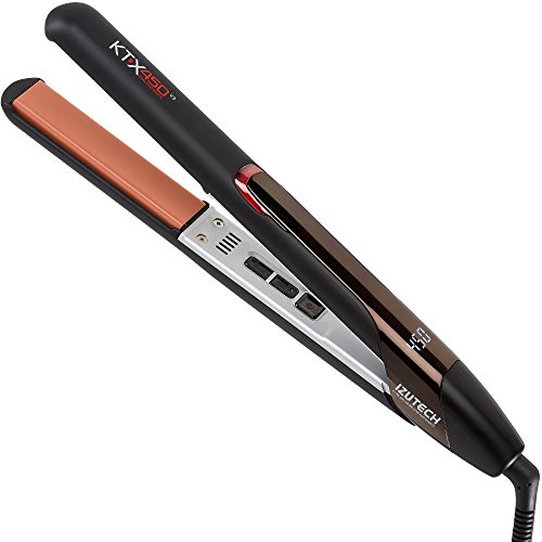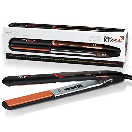 Izutech KTX450 V3 Round Edge Diamond Tourmaline Ceramic Plates Flat Iron with Auto Shut Off Safety Feature, 1 Inch, Copper