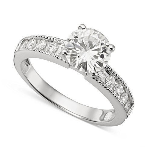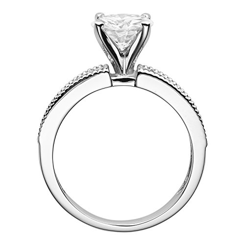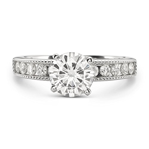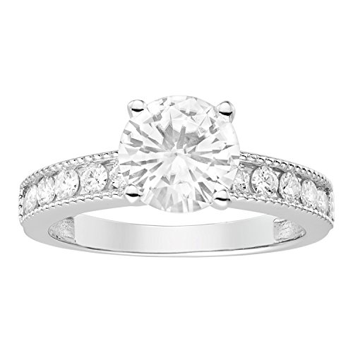 -. Binding : Jewelry -. Brand : Charles & Colvard -. Feature : This gorgeous Forever Brilliant ring showcases a 7.5mm round brilliant cut moissanite gemstone. For extra sparkle, the band is accented with ten 2.0mm moissanite gemstones. / Beautifully crafted in rhodium plated white gold and secured in a four prong setting. / The primary 7.5mm gemstone The total Diamond Equivalent Weight (DEW) including all eleven gemstones is 1.80cttw DEW (Actual Weight 1.64cttw). / Charles & Colvard Forever Brilliant is a near-colorless gemstone in the G-H-I color range that is masterfully hand-faceted by skilled gemstone cutters and carefully hand-polished to reveal its maximum brilliance and enhance its intrinsic fire. / Moissanite created by Charles & Colvard is among the hardest minerals on the planet, more durable than sapphire, ruby, or emerald and has more brilliance than a diamond. It scores 9.25 on the Mohs scale for hardness. -. Label : Charles & Colvard -. Manufacturer : Charles & Colvard -. Model : P376542 -. MPN : P376542 -. PackageQuantity : 1 -. PartNumber : P376542 -. ProductGroup : Jewelry -. ProductTypeName : FINERING -. Publisher : Charles & Colvard -. Studio : Charles & Colvard -. Title : Forever Brilliant White Gold 7.5mm Moissanite Engagement Ring 1.80cttw DEW By Charles & Colvard