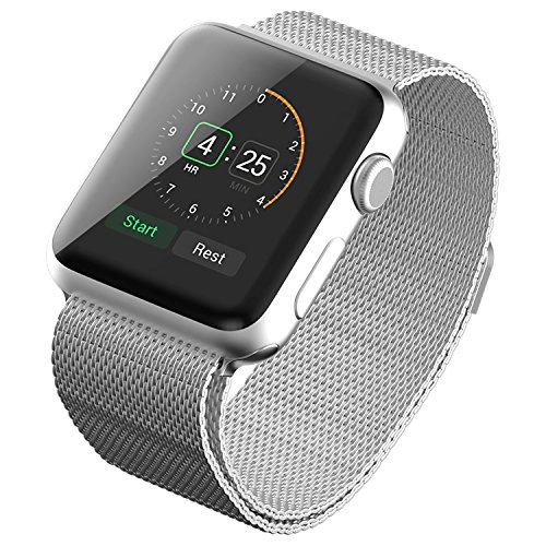 -. Feature : Flexible stainless steel mesh with adjustable Milanese Loop for comfortable day to day wear. Fits 5.70"-10.43" (145mm-265mm) wrist / Unique magnet clasp design, no bucke needed, just stick and lock your watch band easiy / Band comes with Apple Watch Lugs on both ends, which locks onto Apple Watch Band Interface precisely and securely. Easy and direct installation and removal / Custom designed for your precious Apple Watch 38mm 2015 Version All Models, this MoKo Noble Stainless Steel Apple Watch Band features a combination of functionality and style (Will not fit for 42mm Edition) / Personalize your Apple Watch with this refined strap compared to Apple ones, but at much less P.R.Ice.No hassle, super easy to remove the old one and replace with this one. Life time warranty