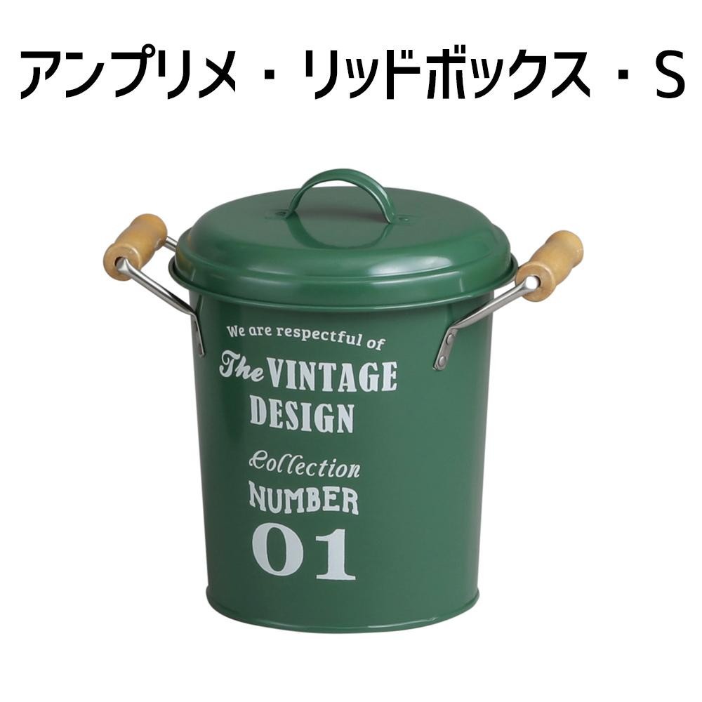 光沢のあるつるっとした質感に、ヴィンテージ風のロゴを合わせることでレトロな印象に♪ 製造国:中国 素材・材質:スチール、ウッド(ユーカリ)、ステンレス 商品サイズ:W25×D19×H24cm ※サプライヤー直送品 ご注文後2~3営業日後の出荷となります【商品名】アビテ(Habiter) アンプリメ・リッドボックス・S HO-201-GR