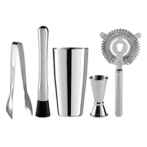 -. Title : Oggi 5 Piece Stainless Steel Bartender Accessories with Plating Set-Includes Muddler