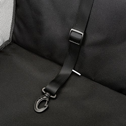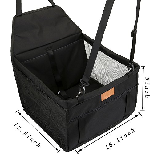 -. Feature : Size: 16"L x 12.5"W x 9"H, perfect for pets up to 13 lbs / Adjustable Clip-on leash can lift the seat up and the pet can see out of window / Easy to set up, simple to remove/fold flat/store-away when not in use / A hook to attach the collar for preventing pets jump out or being thrown when turning or sudden brake / A zippered front storage pocket makes for a convenient place to store treats or toys