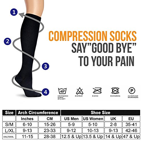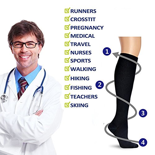 - Do you spend all day on your feet, and the result is swollen ankles and fatigue? -Suffer from Aching and Heavy feeling in Legs, Foot Pain, Shin Splints, Varicose Veins, or Plantar Fasciitis? -Want to prevent blood clots, especially after surgery or prevent injury when inactive? -Graduated Compression increases blood circulation which provides increased performance and faster recovery -MOISTURE WICKING MATERIAL, designed breathability, sore muscles relief, reduce inflammation, and workout recovery -PERFECT SOCKS FOR Nurses, Athletes, anyone looking for lower leg stamina and recovery!? -VERSITILE PERFORMANCE, For women and men, nurses and doctors, athletes and runners. Anyone on their feet all day -ENHANCE PERFORMANCE, rehabilitate, supporting muscles for sporting events. The ultimate Results recovery formula -QUALITY, A blend of nylon fabric that will fight bacteria and moisture for maximum comfort. BACKED BY OUR 100% MONEY BACK GUARANTEE! 0 |