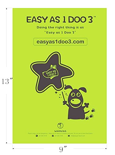 The new line of easy as 1 doo 3 pet waste bags is nature-friendly and sustainable to the core. including packaging and core, the bags have a refreshing lavender scent.each bag is 9" x 13", strong, durable, leak-proof. the box contains 8 refill rolls of 15 bags each or a total of 120 per box.easy as 1 doo 3 rolls fit most dispensers. Eco-friendly material The bags - 100%?oxo-biodegradable?comply? with ASTM D6954-04 The?cardboard cores and packaging are made from 100% recyclable materials SERVICE Buy with confidence.if any problem occurs to the product, pls feel free ?to contact us,we are always here to offer you the best service and look ?forward to doing more business with you in the future. 0 |