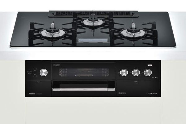 ●キッチンをもっと美しくするデザインで、キッチンと一体化するベベルカットのガラストップが、すっきりとフラットなデザインを演出。