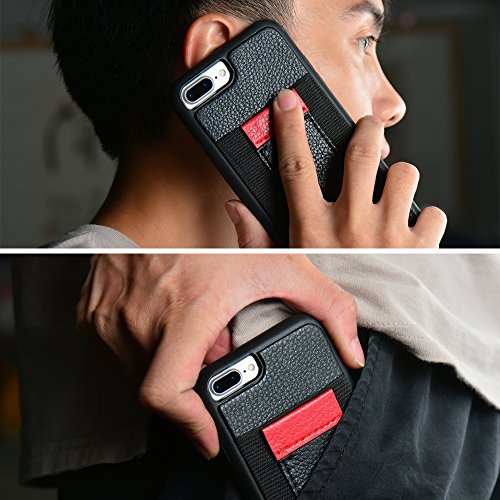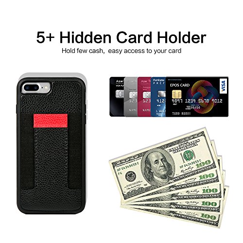 iPhone 8 plus/7 plus Wallet Case, iPhone 7 plus Leather Case, Wallet for iPhone 7/8 plus case Credit Card Holder & ID Card Slot-Screen Protector Durable Shockproof Cover for iPhone 7/8 plus- Black-Red