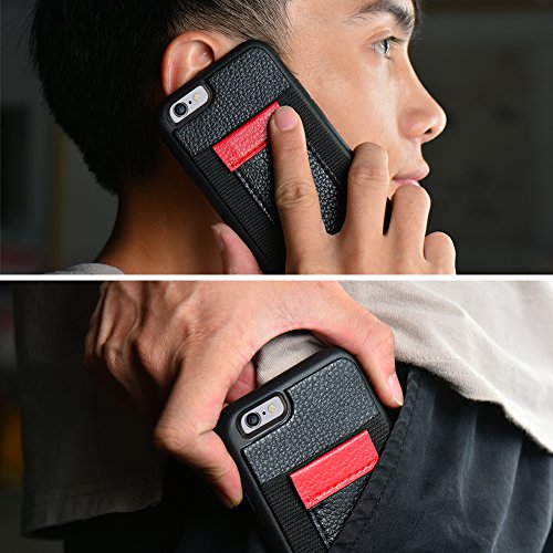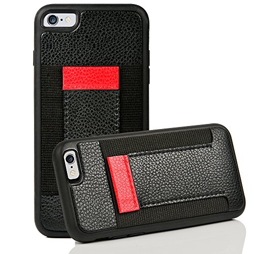 iPhone 6/6s Wallet Case, ZVE iphone 6s case card holder, iPhone6 case with Credit Card Holder & ID Card Slot-Apple iphone6/6s Screen Protector Durable Shockproof Cover for Apple iPhone6 Black-Red