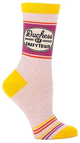 -. Binding : Apparel -. Brand : Blue Q -. Feature : You know exactly who you're going to buy these socks for (besides a pair for you too, of course). It's for the sassy, smart someone who doesn't mind lifting up their bottom cuff to show their true colors. And these are damn fine colors. And DAMN fine soft combed cotton. / Women's shoe size 5-10. / 53% combed cotton, 44% nylon and 3% spandex -. Label : Blue Q -. Manufacturer : Blue Q -. ProductGroup : Apparel -. ProductTypeName : PANTS -. Publisher : Blue Q -. Studio : Blue Q -. Title : Blue Q Socks, Women's Crew