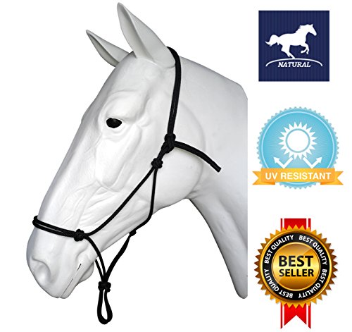 Studio : Hunters Saddlery Publisher : Hunters Saddlery Binding : Misc. Product Description Natural Horsemanship In recent years natural horsemanship training methods have grown in popularity and become widely accepted in the equestrian world. Natural horsemanship emphasizes the importance of authentic communication between horse and handler by promoting a mutual understanding and responsiveness to each other's body language while training. One of the essential tools designed to aid this effective communication is the rope halter. The Halter The Natural Horsemanship halter is one of the key tools you need to effectively work your horse from the ground. These high quality rope halters are carefully crafted and individually hand-tied to ensure a superior and well-balanced fit for your horse. Available in 11 different sizes and a choice of colors, this variety of options ensures you will choose the perfect halter for your equine needs. The Rope The halter is made from high quality, 1/4 inch (6mm) polyester rope that is smooth, durable and responsive. Polyester rope is sweat, dirt, mildew, rot and UV resistant. It will stay truer to its original form for longer without fading, stretching, weakening or breaking. The Difference Cheaper halters are made from inferior rope, typically nylon or polypropylene. These ropes are sensitive to UV degradation and will become brittle and weak if left in the sun. They will stretch and lose their shape in a short space of time. Exposure to rain hardens the rope fibers, causing them to crack, which rapidly makes the rope unsafe. These cheap ropes are stiff and slippery, and knots tied in them are notorious for slipping and becoming undone. For these reasons, experienced Natural Horsemanship practitioners always choose high quality polyester rope halters for all their training needs. 0 |