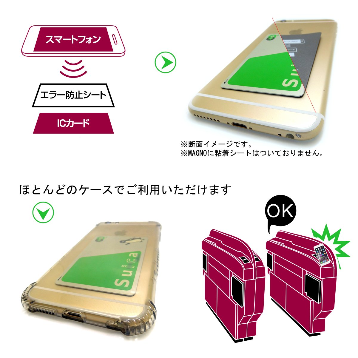 If you insert an IC card and a magnetic shielding sheet in the card storage part of various smartphone case, you can pass through the ticket gate smoothly.
