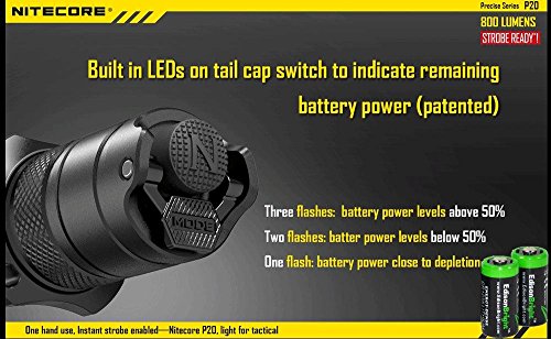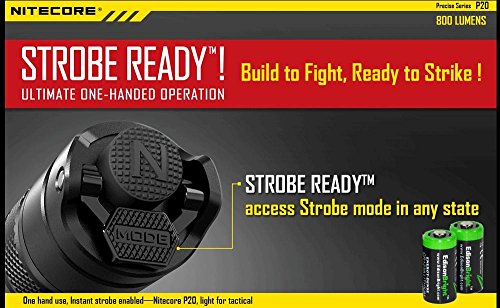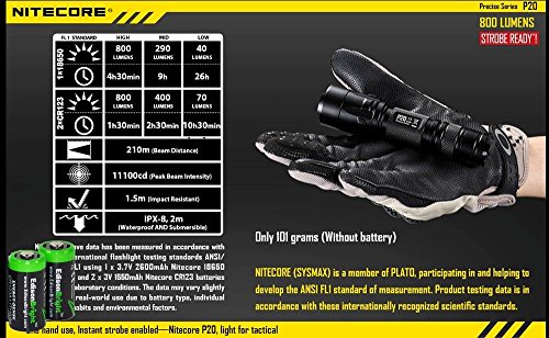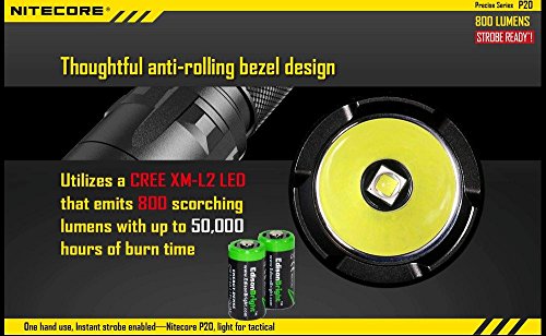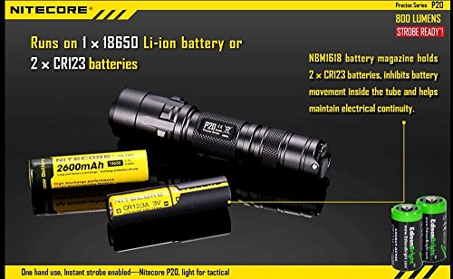 NITECORE P20 800 Lumen CREE XM-L2 LED specialized tactical duty Strobe Ready flashlight with 2X EdisonBright CR123A Batteries