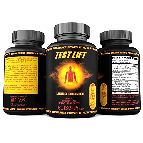 -. Feature : THE ALL NATURAL TESTOSTERONE & LIBIDO FORMULA- ARE YOU READY for an increase in strength, energy, passion, & stamina giving the endurance to maximize your confidence levels to peak at the highest points throughout your workouts and your day?!! / MUSCLE GROWTH- These fast acting potent combination of ingredients is designed to help promote & increase muscle growth & strength. Take consistently for the best results. / LIBIDO & PASSION- TEST LIFT promotes circulation & a healthy blood flow needed to perform physically & mentally. Have focus & clarity while having that extra boost & sensation when your body desperately needs it for men & women in & outside closed doors! / ALL NATURAL INGREDIENTS THAT WORK! Horny Goat Weed, Maca Root, Tongkat Ali, Muira Puama, Saw Palmetto, L-Arginine, & more! This product is packed with natural herbs that have been used for centuries and have been proven to give you real results without the risky side effects from unknown chemicals! / MADE IN THE U.S.A.- All of our products are proudly made in the U.S.A. in FDA inspected laboratories and is GMP certified. Our products come with an industry standard of 100% Money Back Guarantee. If you are not satisfied, return it and get a full refund, no questions asked! Buy Organic Trace's TEST LIFT NOW & give your body the POWER, VITALITY, & STAMINA it desires!
