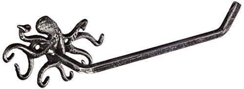 Hampton Nautical K-9205-silver Antique Silver Cast Iron Octopus Toilet Paper Holder 11" - Beach Bathroom Decor - Beach Decor - Cast Iron