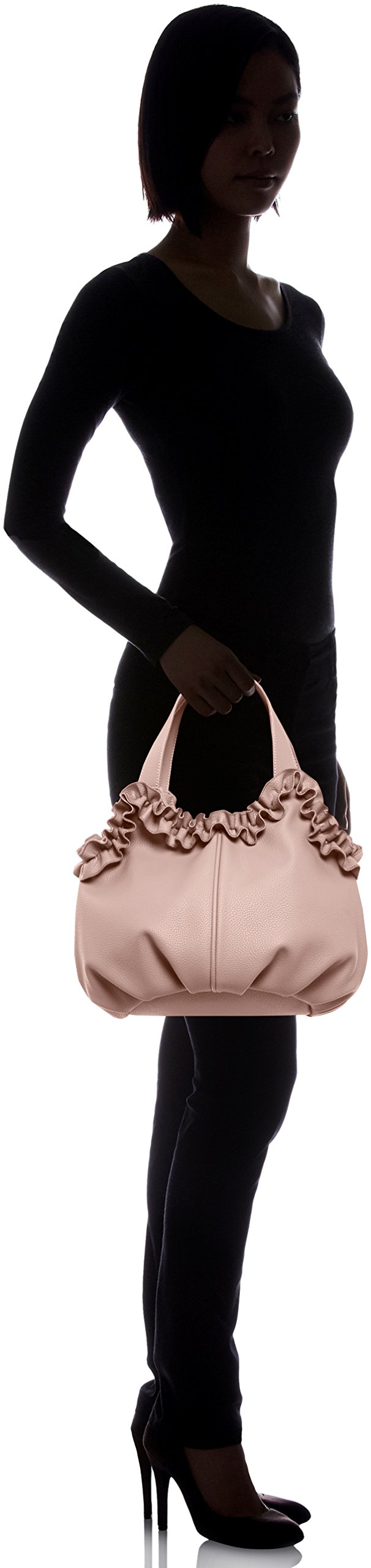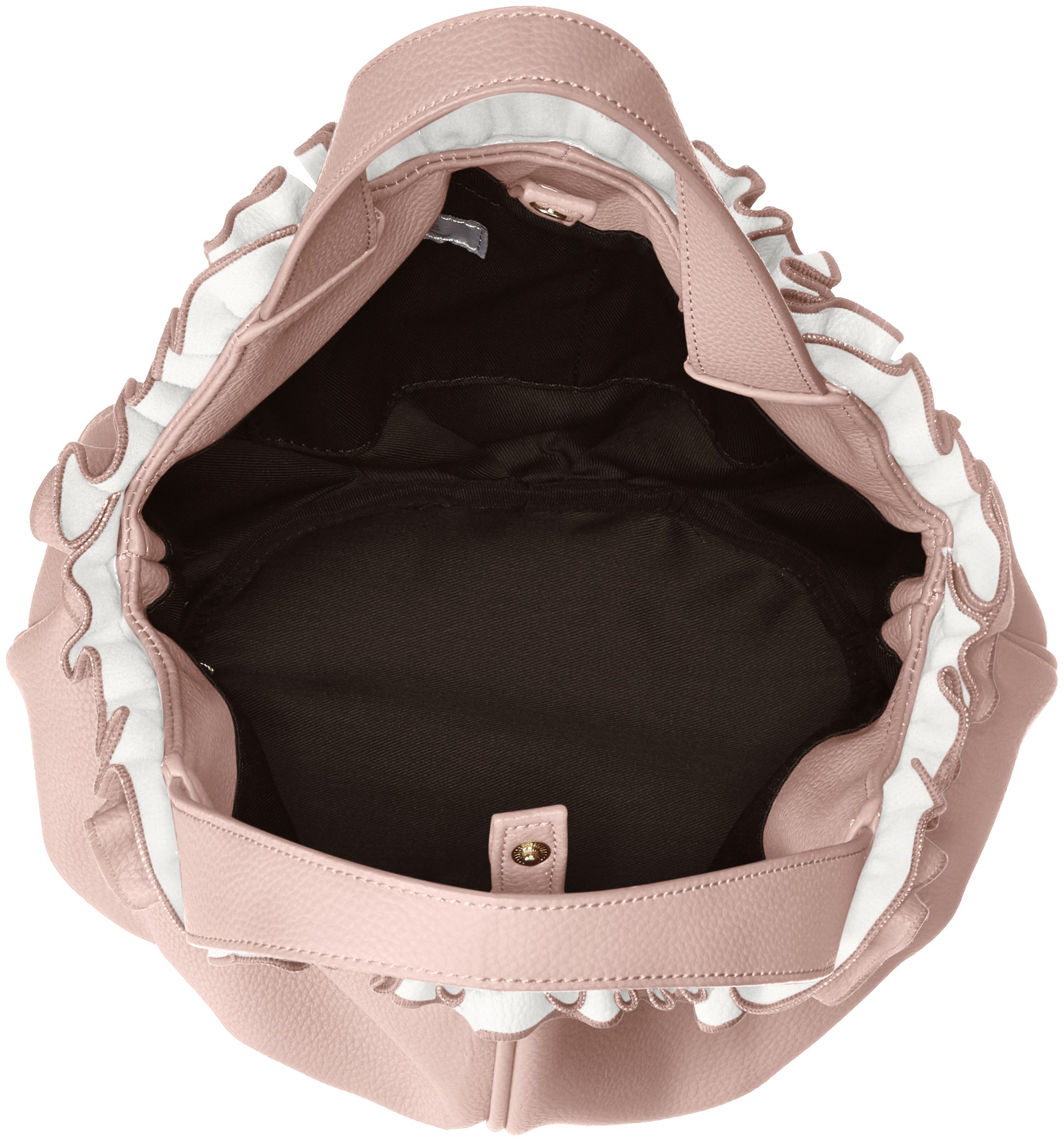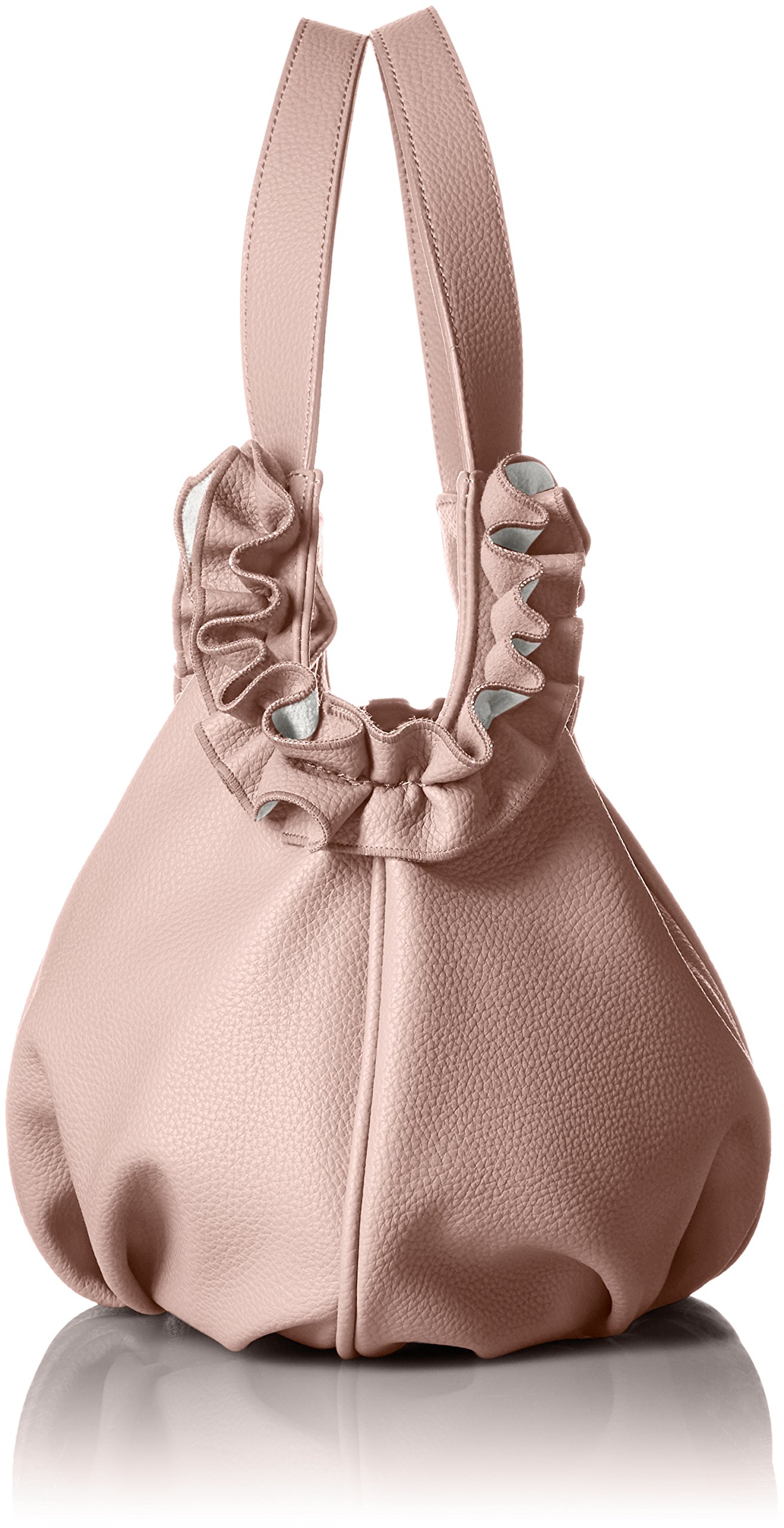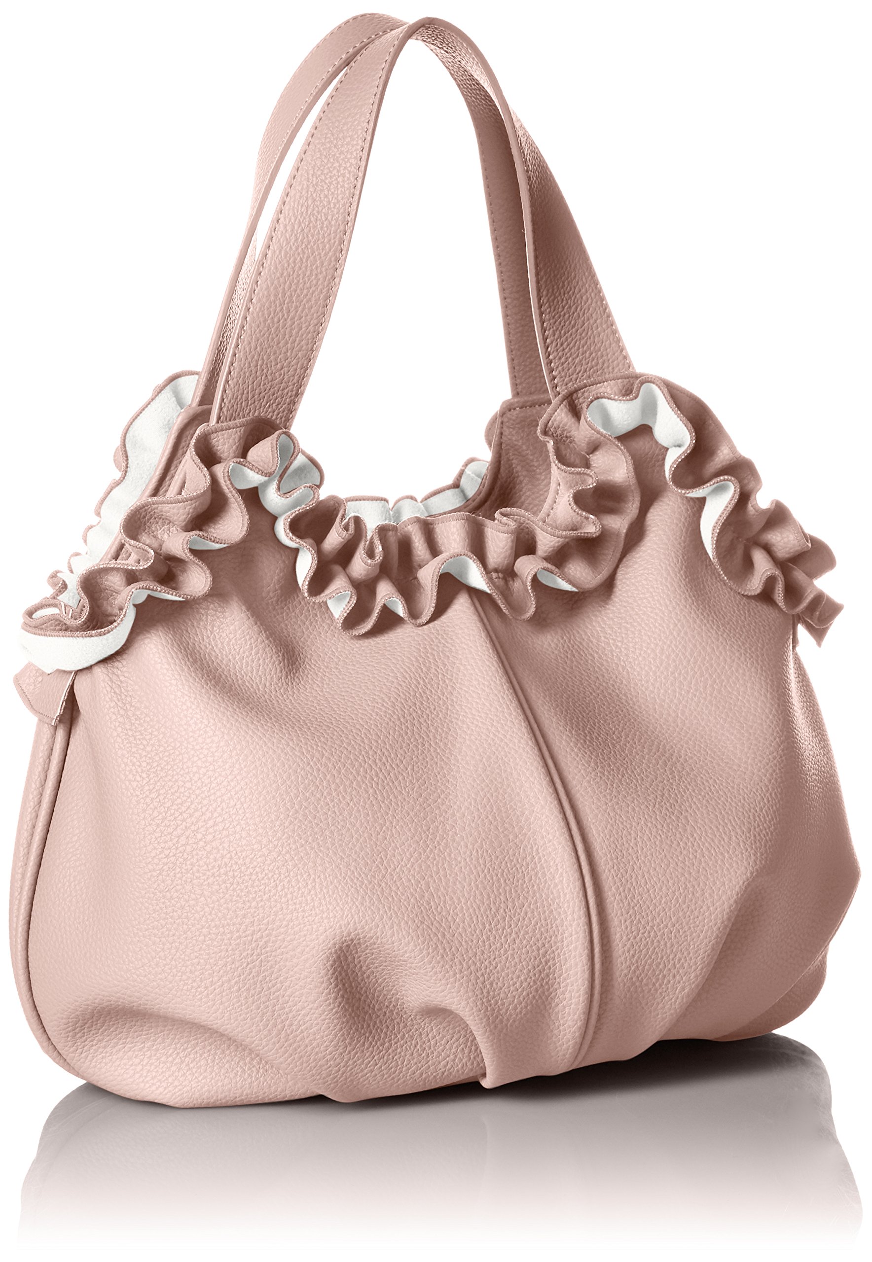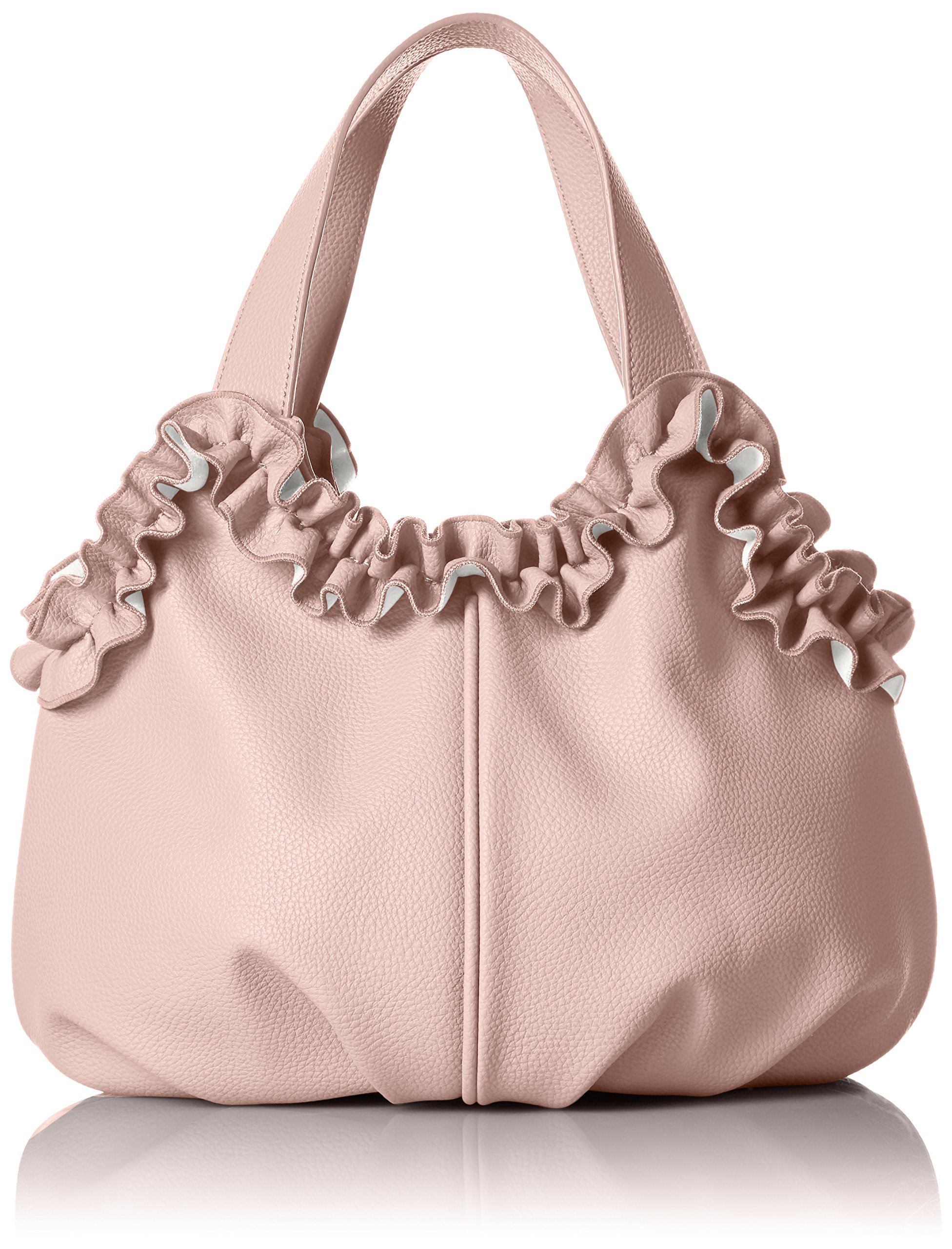 A tote bag with a pretty colored form and ruffled mouth fringes.
