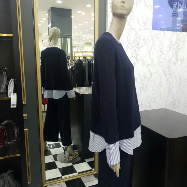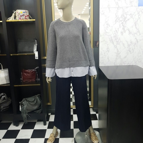소매와 아랫단에 셔츠를 덧입은것같이 배색 처리되어 캐주얼하고