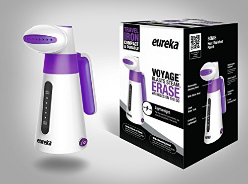 Eureka ERV2B 100ml Portable Handheld Fabric Clothes Garment Steamer, Quick Heat With Travel Pouch, Small White/Purple, August 2017 Model