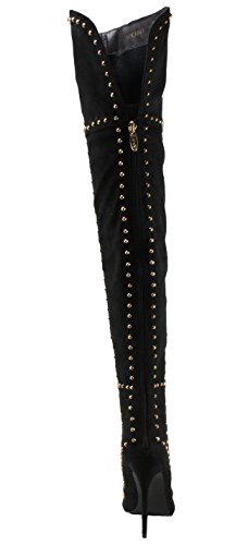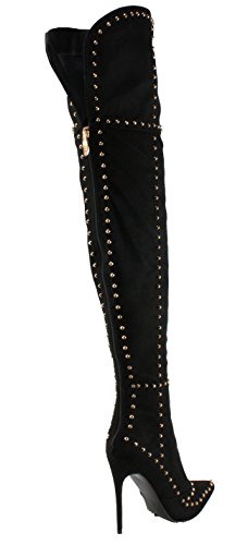 Binding : Apparel Product Description women's thigh high boots, faux suede upper, pointed toe, back zip closure, open back at the top part of the shaft, studs decor, high heels. The boots run small. Please contact us if you are not sure about size fit. We will be glad to do a toe to heel measurement for you if you let us know the size. 0