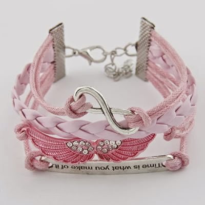 Gelang Korea Multi Charm Peace, Wing & Letter Pink