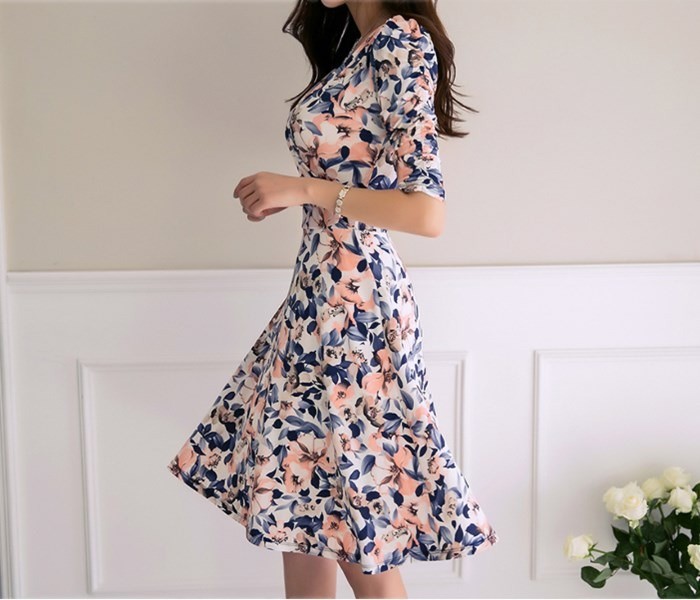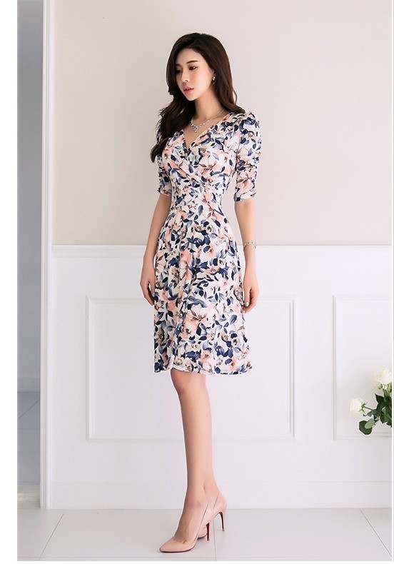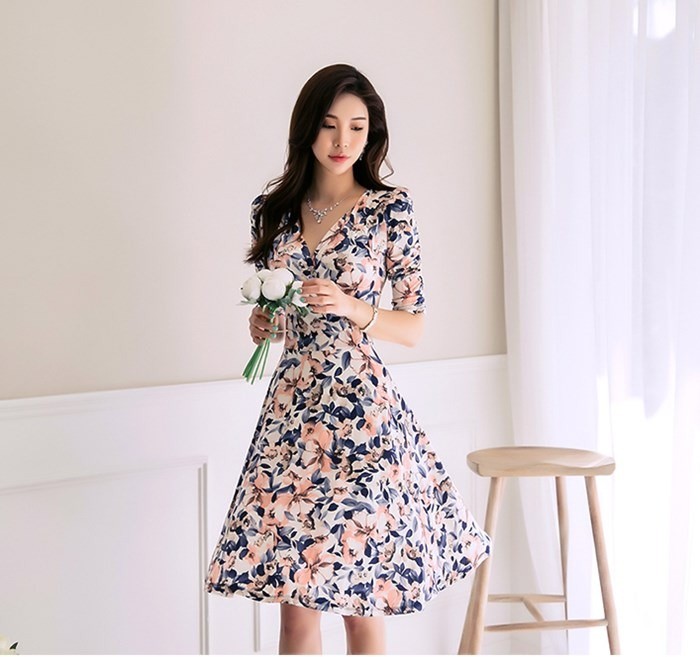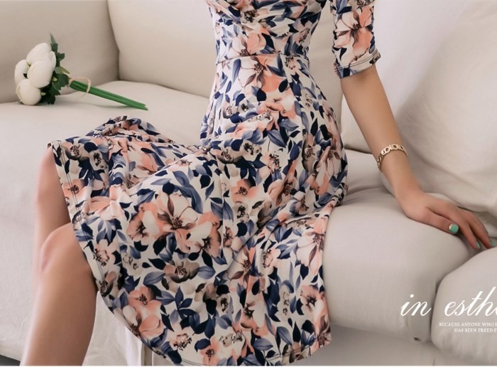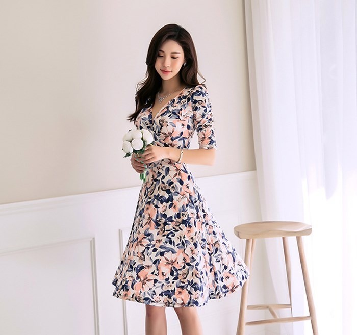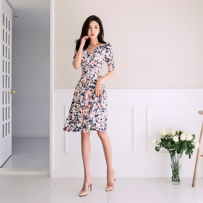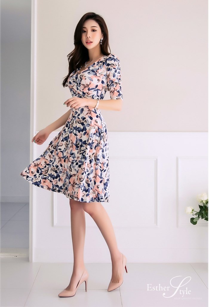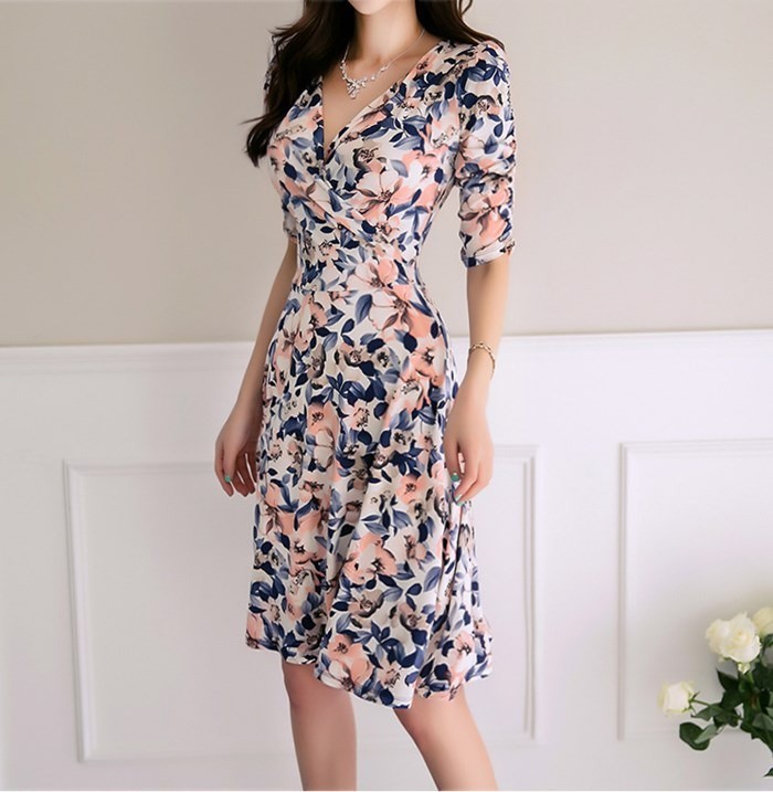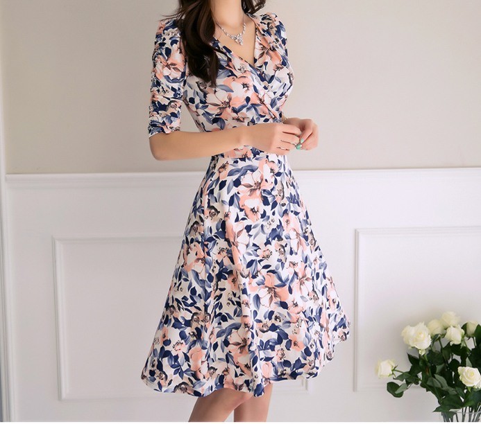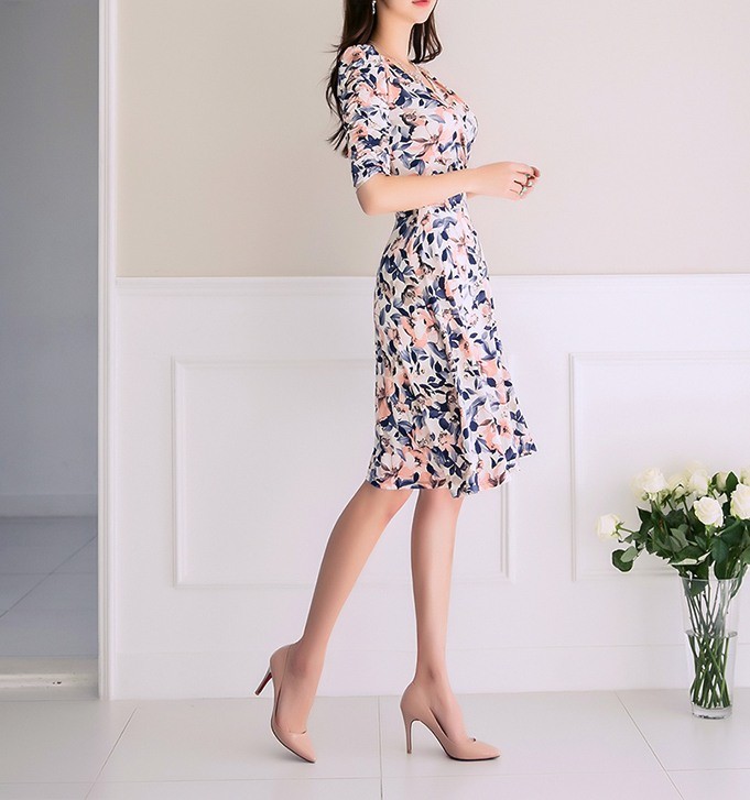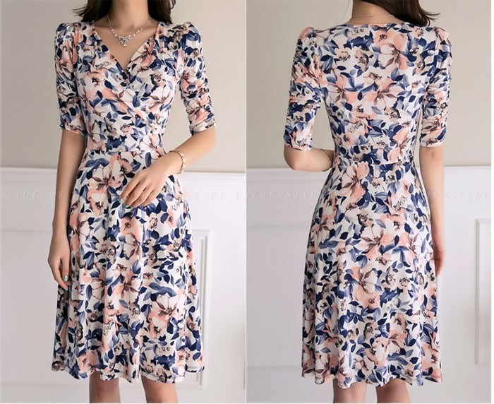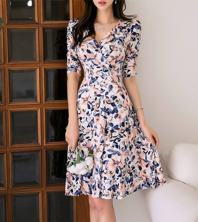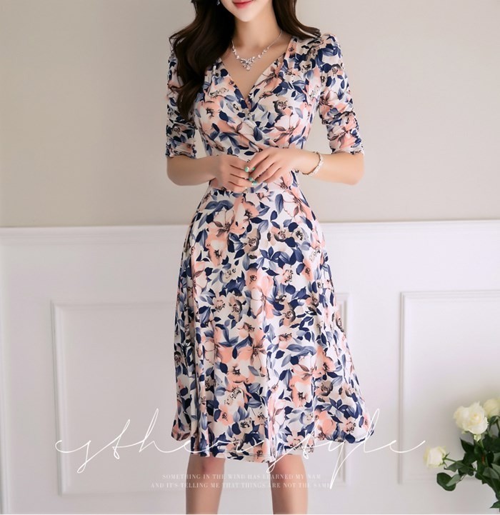 商品名:ワンピース レディース きれいめ 上品 花柄 カシュクールワンピース フレア 膝丈 40代 ファッション 春 夏 新作 ワンピ セクシー エレガント 高級感 お呼ばれ デート