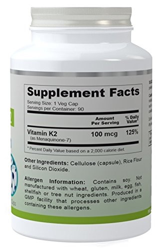 -. Title : PURE Vitamin K2 (Mk7) 100mcg (90 Vcaps) #1 for Optimal Heart Health, Bone Density, Cardiovasuclar & Kidney Function. High Strength*Premium Quality*Superior Bioavailability*Made in USA*FDA & GMP